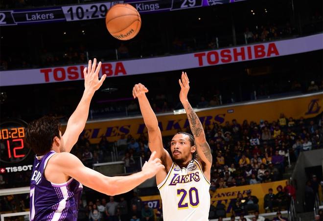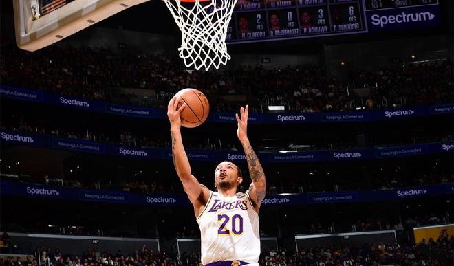 尼克·史密斯也在发展联盟打球,他属于双线作战,12月份他只为湖人打了7场比赛。但至少在这一战,他证明了自己是可以为东皇组合减压的。