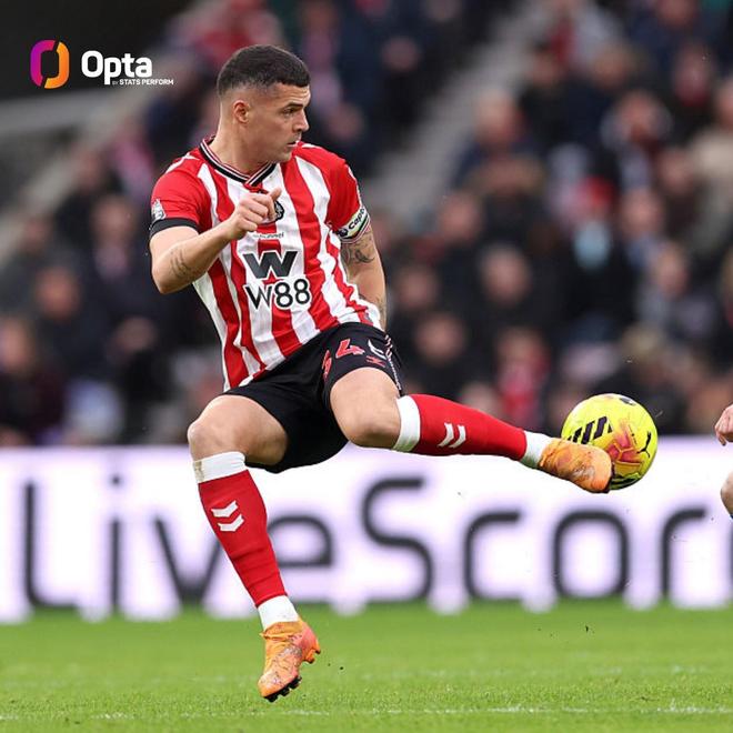 扎卡的英超赛季最多助攻数是7次,这位瑞士中场在2017-18赛季、2022-23赛季效力于阿森纳时都取得这一成绩。